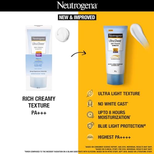 Neutrogena Ultra Sheer SPF 50+ Sunscreen: Broad Spectrum UVA/UVB, Blue Light Protection, Oil-Free, Water-Resistant
